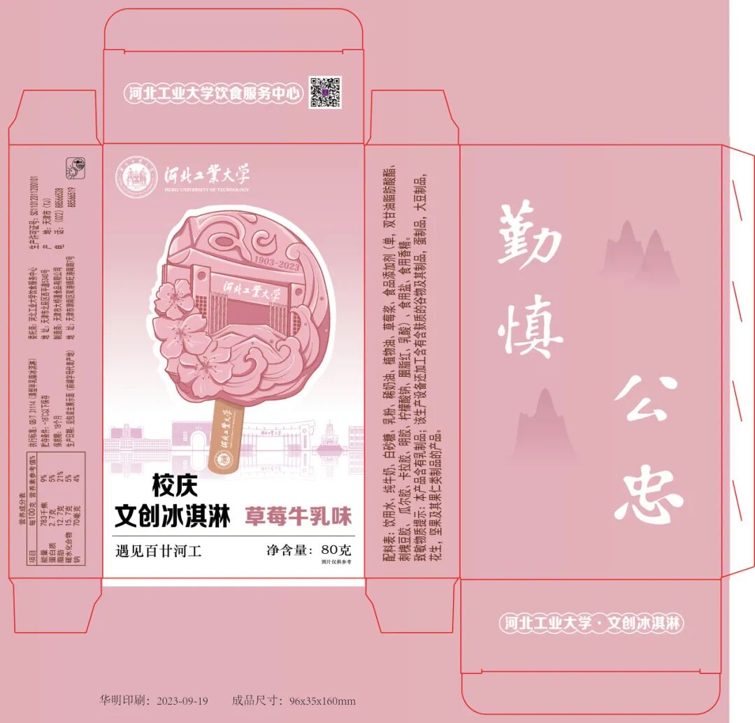 本次文创冰淇淋生产厂家由我校后勤服务中心领导经过多次实地考察、综合评选,最终选取天津本土企业天津市大桥道食品有限公司作为冰淇淋的制作商,以确保冰淇淋的食品安全与品质。大桥道不负众望,在确定了目标口味后,研发部门经多次试验、打样,最终确定了原料配比,研发出美味可口的冰淇淋。值得一提的是,我校文创冰淇淋采用纯牛奶打底,乳脂含量远超一般雪糕标准达到了冰淇淋的品质,因而口感更加细腻顺滑。